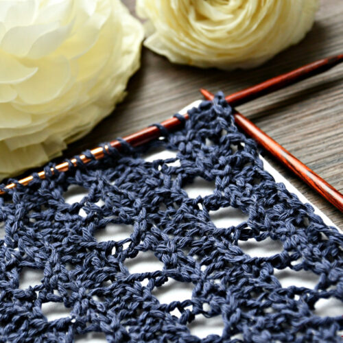 Das Loch-Rippen-Muster ist ein perfektes Frühlings- und Sommermuster. Wie wäre es mit einem Top oder einem luftig leichten Pulli, unter dem man einfach ein Trägerhemdchen in einer anderen Farbe anzieht – ein toller Effekt, wenn die Farbe durchschaut. In meinem Beispiel mit der dunkelblauen Wolle und einem weißen „Untergrund“ sieht es gleich sommerlich und maritim aus.