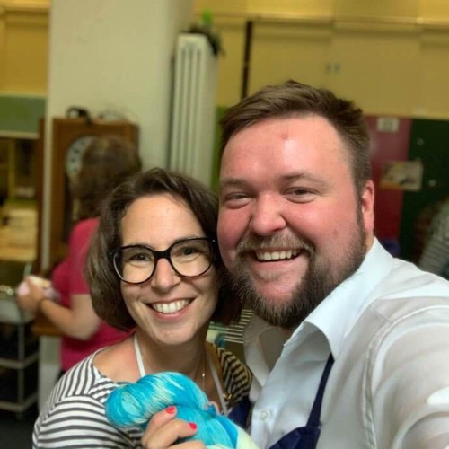 Wir haben uns bereits vor einigen Jahren kennengelernt, da habe ich sogar mal einen Urlaubsvertretungs-Blogbeitrag auf deinem Blog geschrieben … uiuiui, das ist schon ein Weilchen her. Und dann haben wir uns hin und wieder auf verschiedenen Events gesehen – zuletzt bei dem tollen Färbeworkshop in Augsburg. Hier ist auch dieses nette Foto von uns entstanden. 🙂